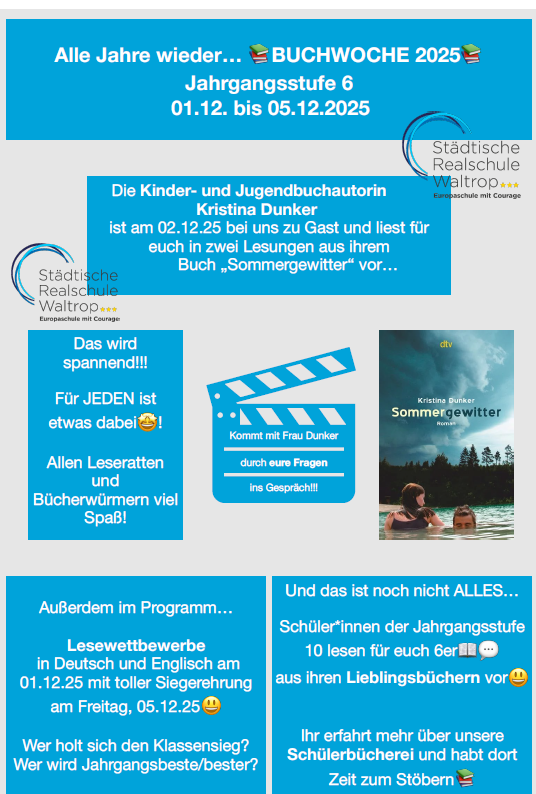 Vom 1.12. - 5.12.2025 findet unsere diesjährige Buchwoche statt. Unsere Schüler_innen der Jgst. 6 dürfen...