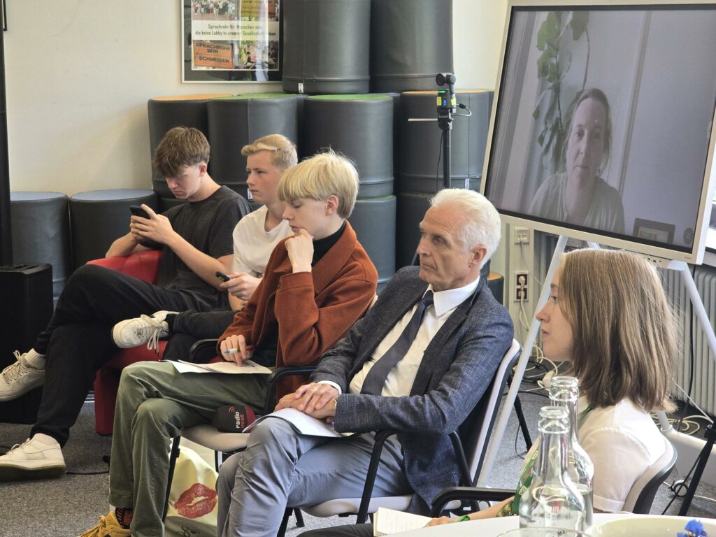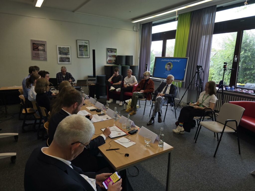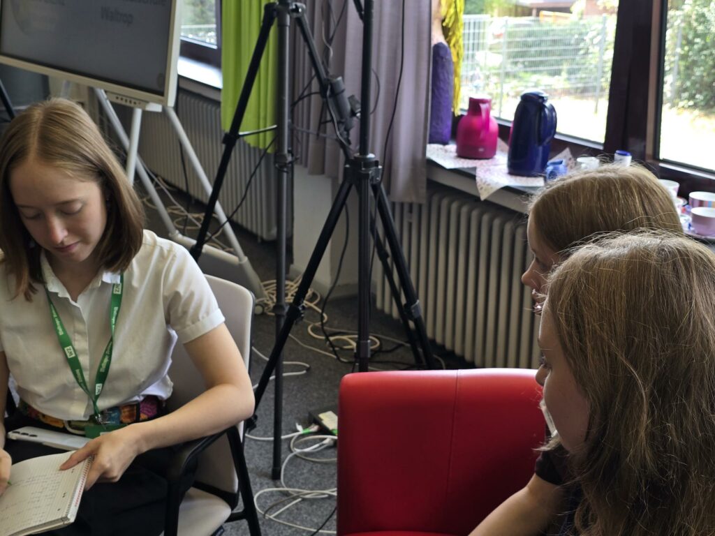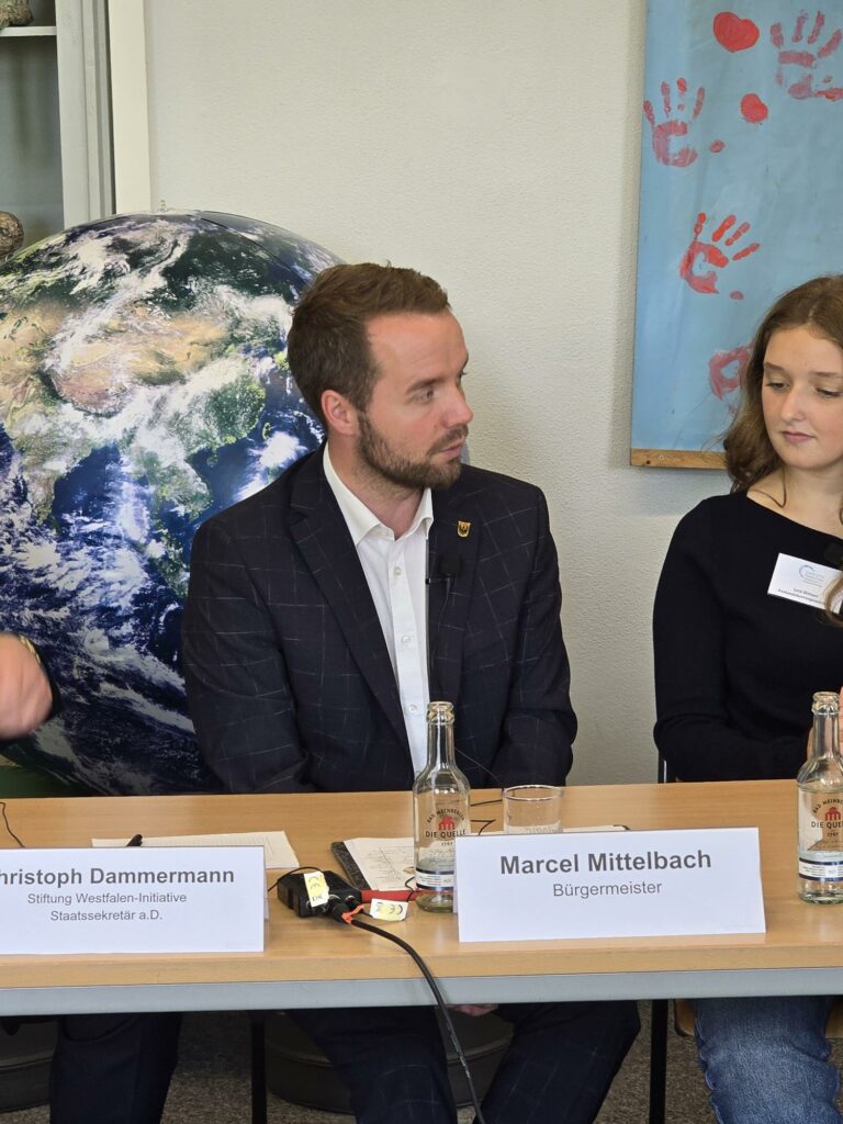 Unsere Auslandskorrespondentinnen Leni und Anna aus der 10 aaufmerksame ZuhörerChristoph Dammermann, Geschäftsführer Stiftung Westfaleninitiative und Bürgermeister Marcel MittelbachInterview mit der Waltroper ZeitungBürgermeister Mittelbach Maite und Hannah führen durch die PKEin professionelles Equipment ermöglicht Liveschaltungen nach Bremerhaven und HarderwijkDr Strautmann, die Waltroper Zeitung und Radio Vest informieren sich über das VeranstaltungsformatAn interview in English!
